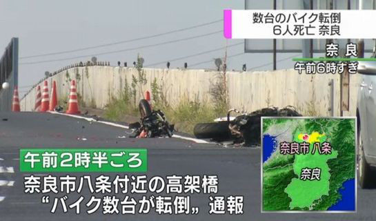 【社会】バイク3台相次ぎ転倒、17歳と18歳の4人含む6人死亡「信号待ちをしていたら、横を数台のバイクがすり抜けていった」奈良県★3