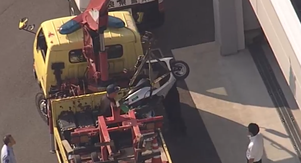 1台のバイクがアクセルとブレーキを間違えて他の2台に突っ込んだらしいよ